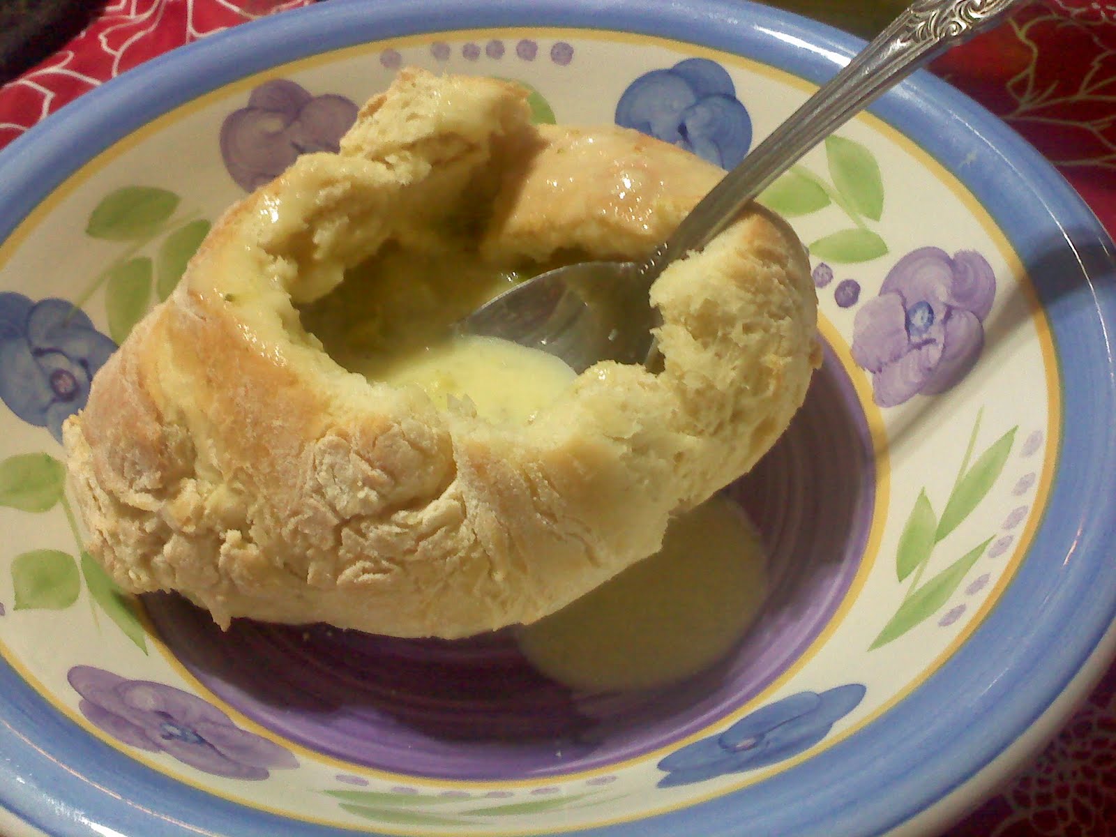 Preheat Oven to 400 degrees. In a large bowl or the bowl of an electric bread mixer, combine warm water and sugar. Sprinkle yeast over the top and stir. Wait 10 minutes until yeast mixture is frothy. Add salt, oil, and half of the flour. Beat well in mixer or with a wooden spoon. Add remaining flour and mix well until a soft dough forms. Turn dough out onto floured board and knead 2 or 3 times to coat with flour. Divide into 8 to 10 equal parts, depending on size of bowls desired. Form into large balls and place in small foil pans (small pot pie pans work well). Allow dough bowls to rise for 20 minutes. Bake for 25 minutes or until lightly browned. Remove from pans. Cut off tops and hollow out insides. Serve with soup.